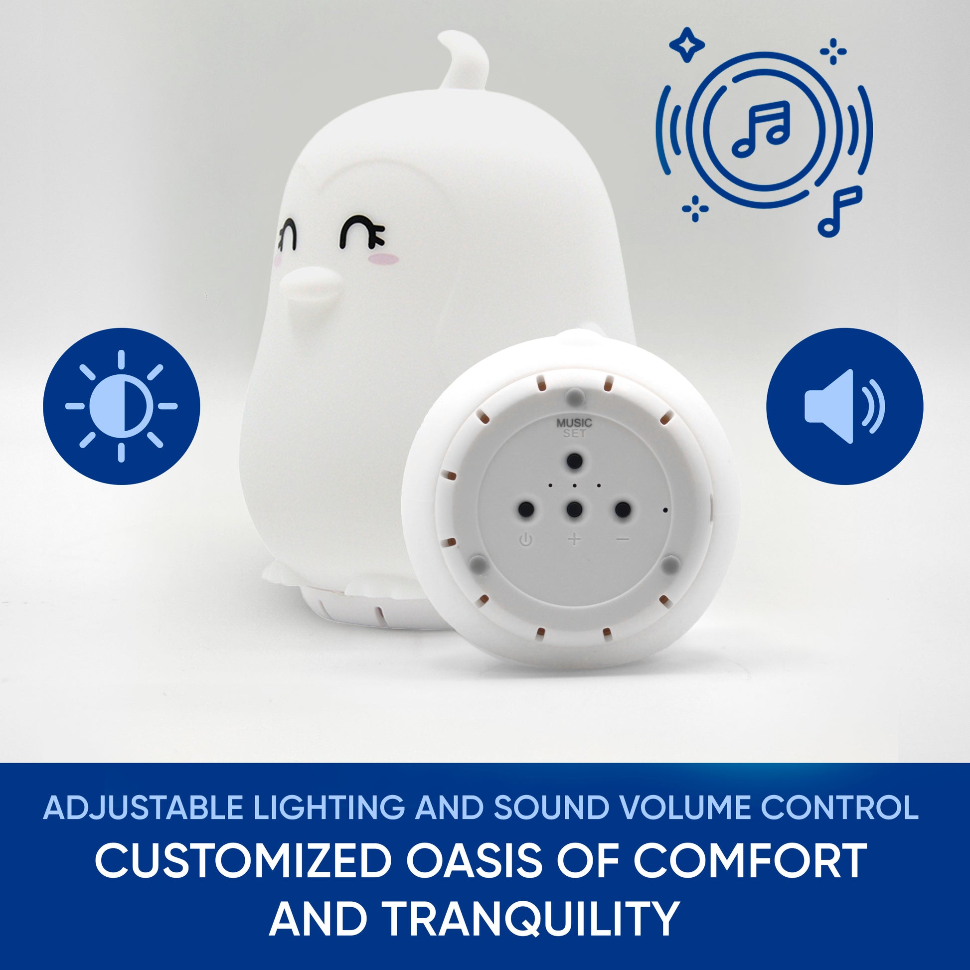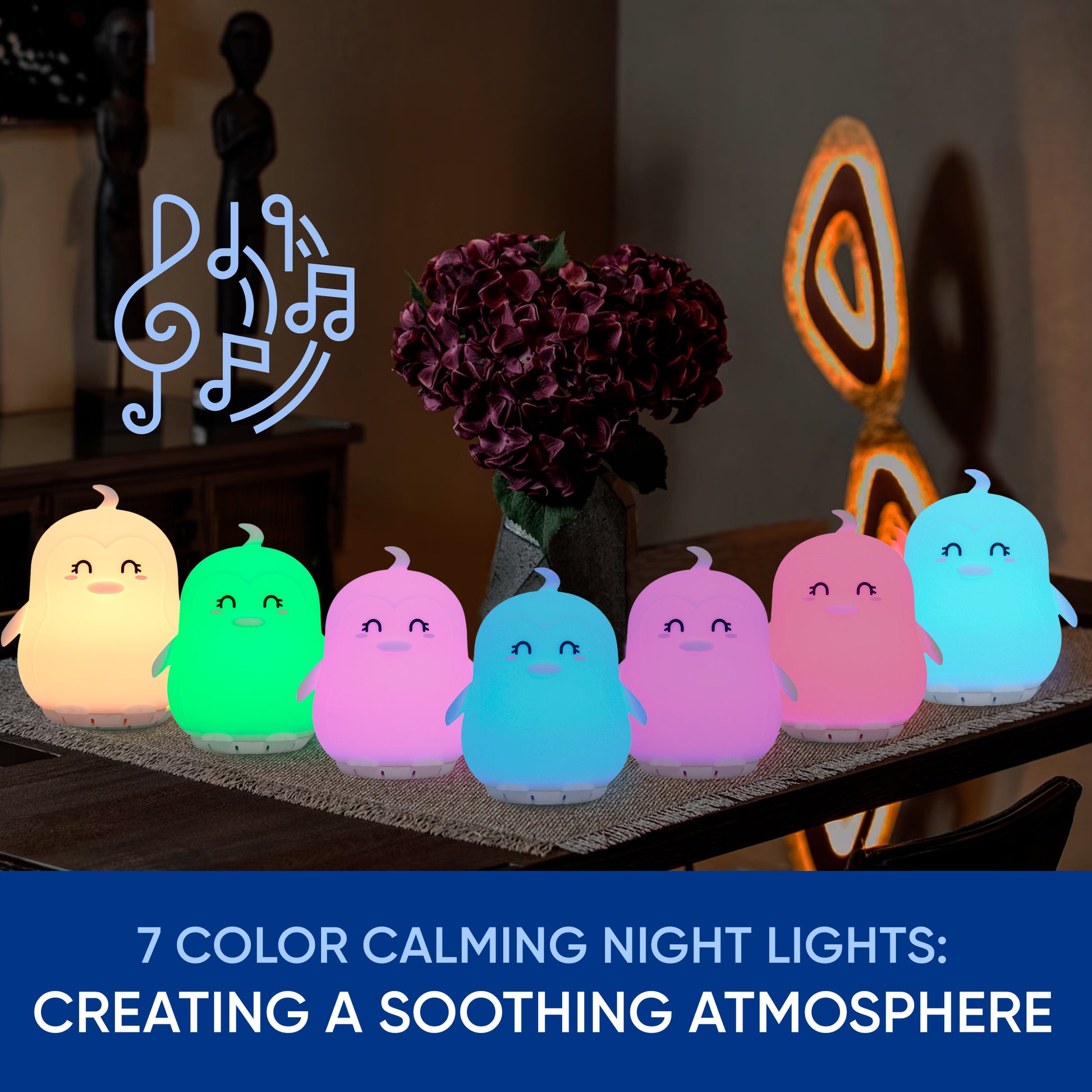 - 7 Color Night Light Create a Soothing Atmosphere - Transform any room into a tranquil oasis with our 7 soft ambient night light options (blue, purple, light purple, pink, green, lighter blue, and yellow) with three adjustable brightness levels. Customize the lighting to your preference for improved comfort, relaxation, or productivity.