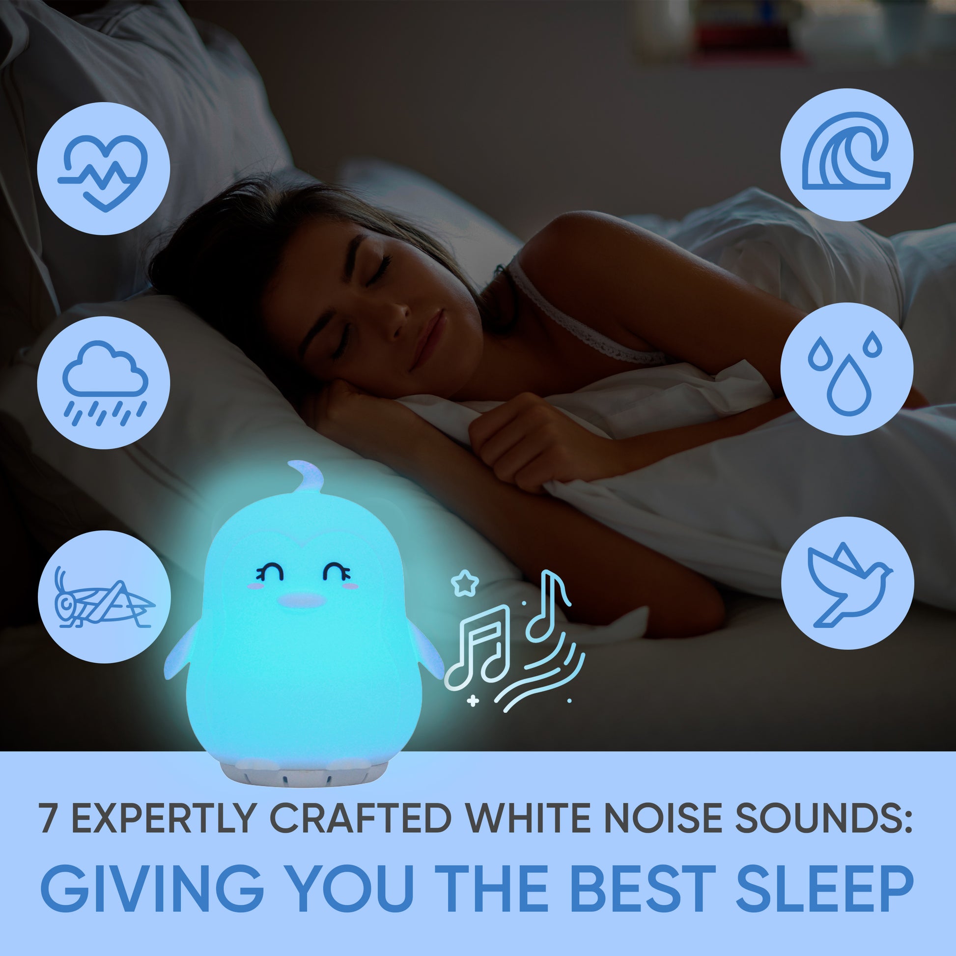 - Relax & Unwind With 7 Expertly Crafted Relaxing White Noise Nature Sounds: This device creates a consistent, soothing background sound (including heartbeat, ocean waves, rain, water drops, crickets, and bird sound) that masks disruptive noises, promoting relaxation and better sleep. The white noise also improves focus and productivity in work environments by reducing distractions and increasing privacy. Perfect for individuals with tinnitus or hyperacusis.